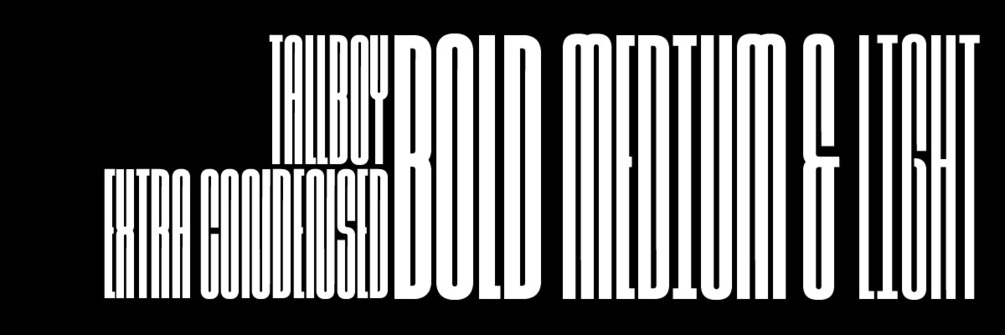 A package of Tallboy Extra Condensed Bold, Medium & Light.